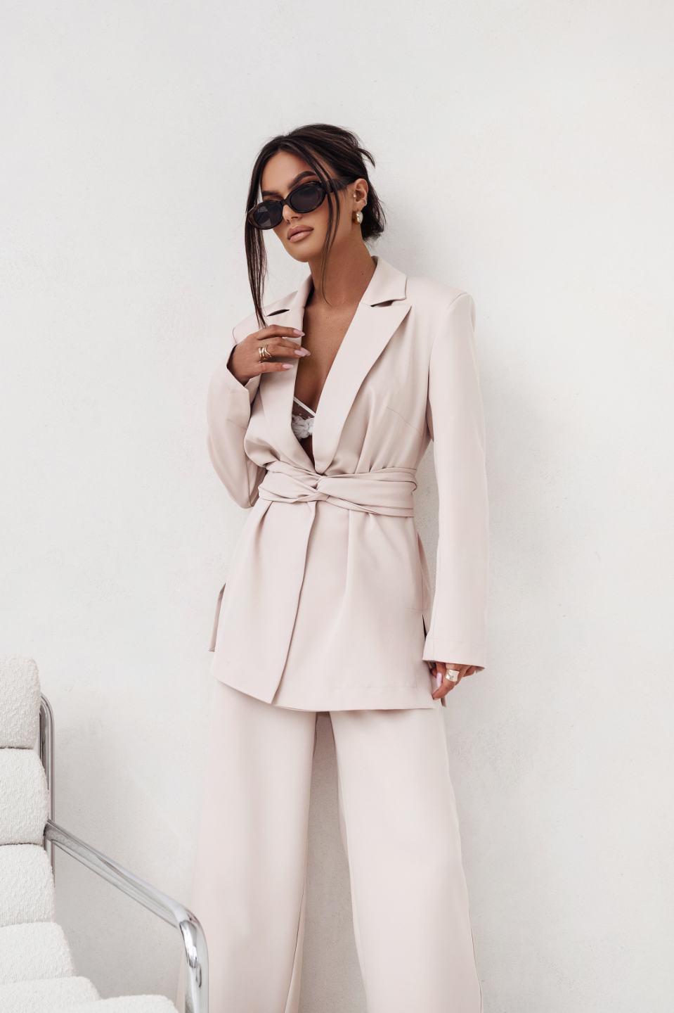 Odkryj elegancję i nowoczesność z garniturem EMMA w kolorze beżowym. Ten wyjątkowy zestaw został zaprojektowany z myślą o kobietach, które cenią sobie zarówno styl, jak i wygodę. Dzięki połączeniu wysokiej jakości materiałów, 95% wiskozy i 5% elastanu, garnitur zapewnia doskonałą oddychalność oraz elastyczność, co czyni go idealnym wyborem na różnorodne okazje, od formalnych spotkań po wyjścia ze znajomymi.